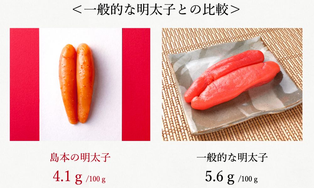 一般的な明太子と比較しても塩分が少ないという結果が出ています。