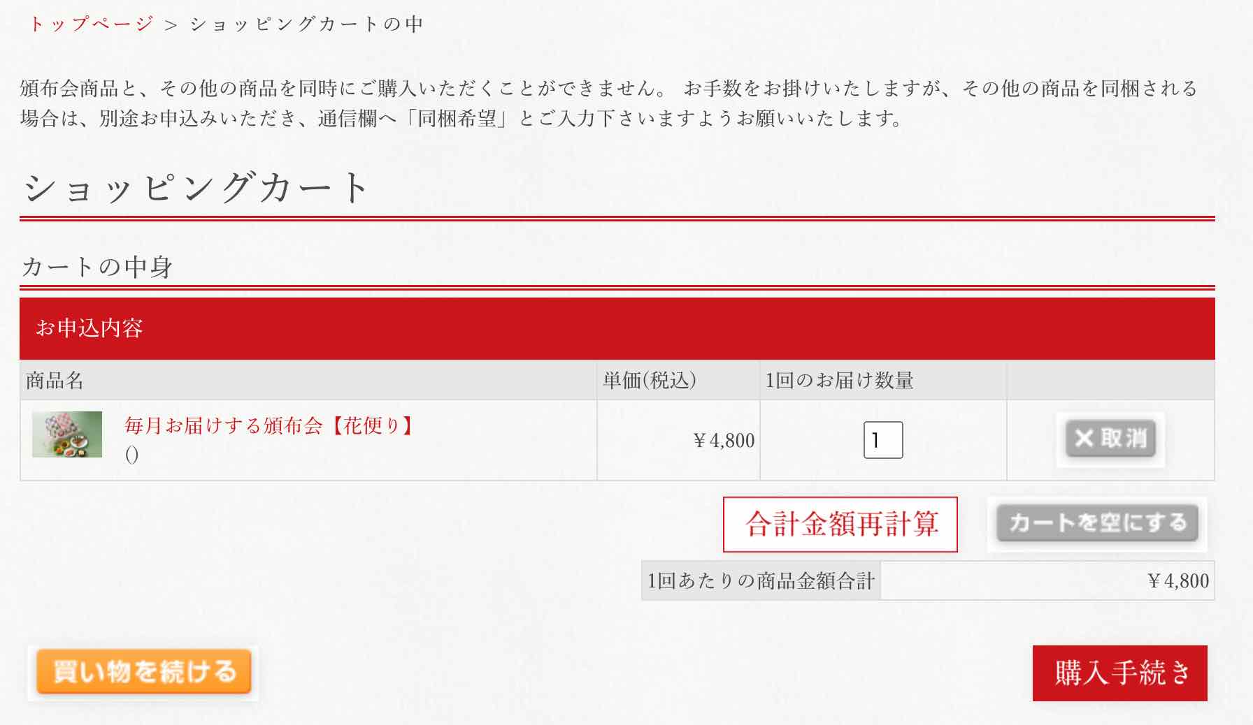 花便り注文画面
